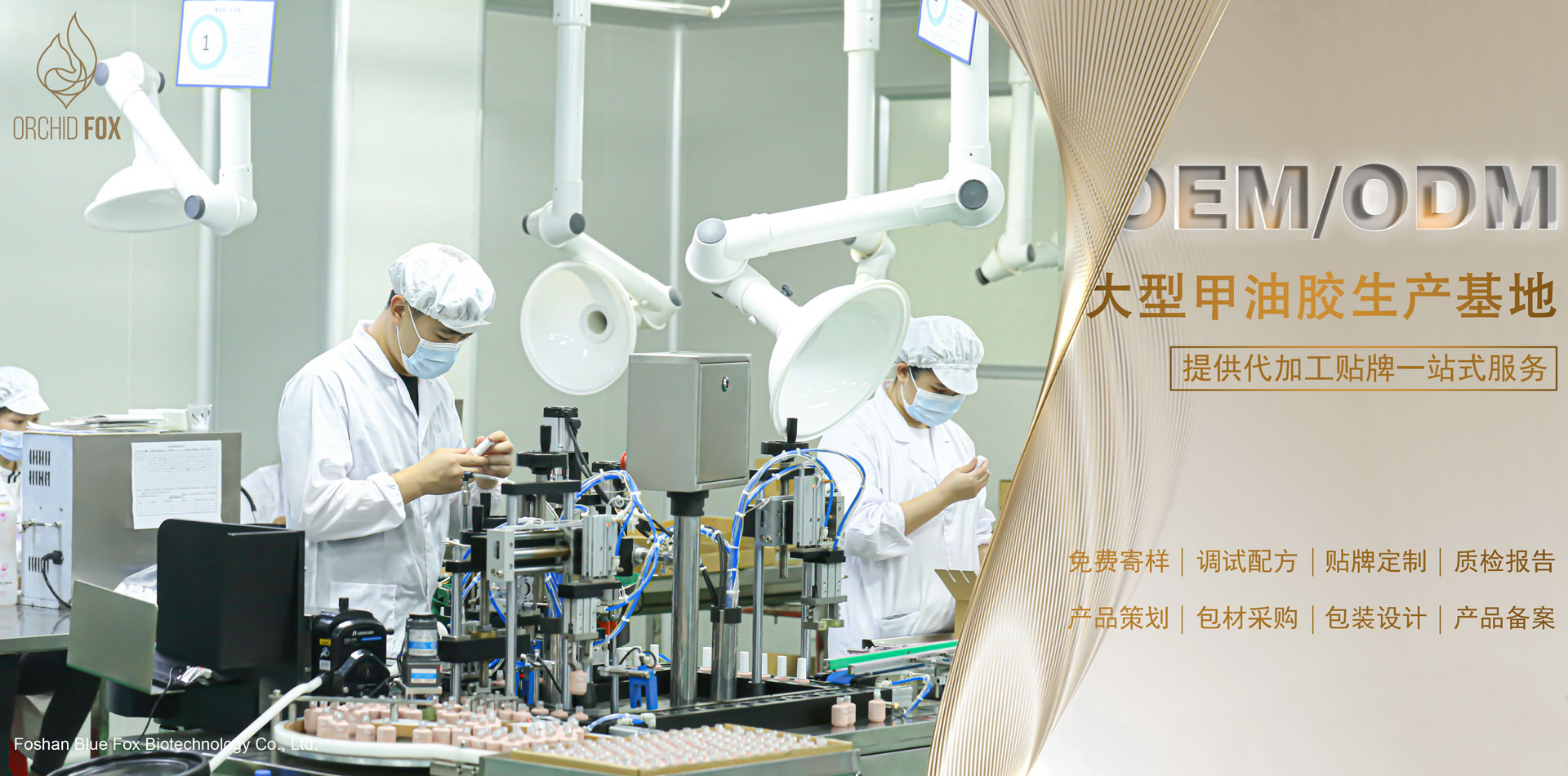 佛山市藍狐生物科技有限公司(原廣州甲逸妝品有限公司)位于廣東省佛山市科技工業園內,擁有自主研發的生產基地,十萬級GMP化妝品生產車間,高級實驗室和研發團隊,和商品進出口權,已獲得歐美ISO22716、GMPC質量體系及SGS認證. 公司致力于美甲產品的研發和生產,主要生產美甲膠、指甲油、Polygel、水晶粉、光療延長膠、底膠、封層、各種功能膠及大包裝基料。現公司旗下創立“甲逸 ” “十指繡””SZXvenus””ORCHID FOX”美甲品牌,提供各類美甲OEM/ODM代加工基料及產品備案服務,公司擁有雄厚的科研力量和高效的生產能力,同時在不斷提高產品質量并開發新產品,形成了廣泛的銷售網絡,已得到國內外客戶高度認可。 我們始終追求“以人為本,誠實守信”的經營理念,并貫徹于研發、生產、銷售和售后服務的各個環節。公司堅持開發環保優質的美甲產品,倡導美甲行業健康發展!